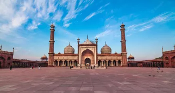Jama Masjid of Delhi is the largest mosque in India. The Jama Masjid is located in the old city. It stands in front of the Red Fort across the road. It projects beautifully into the Old-Delhi skyline. It was built between 1644 and 1658.