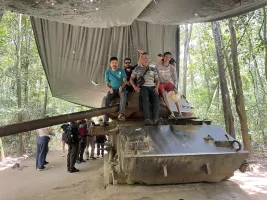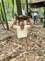 At 8:00 AM, leave the meeting place for the Cu Chi caves. After a 1.5-hour drive, people will reach the Cu Chi caves. Our tour guide will give you a general sketch of Cu Chi and its storied past. In a documentary about the tunnels, the history of the caves and how bad the war was in the area will be shown. You will be led to the tunnel system, which includes the weapon factory, hospitals, and restaurants. You will crawl under the tunnels...