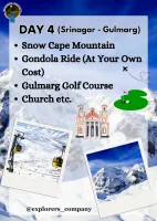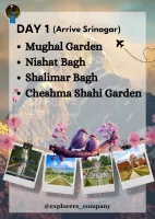 Book you lucrative tour package of Srinagar for 4 Nights, 5 Days offered by Explorers Company Private Limited at 14,999 /Per Person . Find detailed day wise itinerary of Srinagar tour package below which will be further customized once you enquire with us and share you trip details.