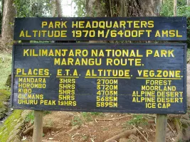 Departing from Moshi a 1-hour drive will take you through the Village of Marangu to the Kilimanjaro National Park Gate. We will patiently wait for our permits to be issued while watching the hustle and bustle of operations as many crews prepare for the journey ahead Enjoy the beautiful rainforest scenery and windy trails while your guide tells you about the local flora and fauna and natural wildlife. At these lower elevations, the trail can be muddy and quite slippery. We highly recommend gaiters and trekking poles here.
