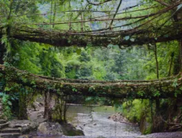In the morning, depart from your hotel to Tyrna Village for an exhilarating Nongriat Trek through Meghalaya's beautiful landscapes. Upon reaching Tyrna Village, ascend 3,500 steps to reach Nongriat and marvel at the stunning Double Decker Root Bridge. You can extend your hike to Rainbow Falls for an additional fee. After exploring these natural wonders, get driven to your hotel for a restful overnight stay.