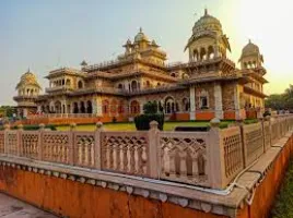Albert Hall Museum ( Central Museum): The museum displays a wide range of metal objects, wood crafts, carpets, stone and metal sculptures, arms and weapons, natural stones and ivory goods.Birla Temple:The temple is a work of art and has a marvellous display of exquisite carvings and sculptures covering many mythological themes. This temple is built entirely of white marble and dominates the skyline of south Jaipur