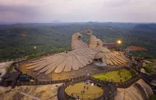 After breakfast, check out from the Houseboat and proceed to Varkala, which is famous for its cliff beaches. We will give you a complimentary tour to Jatayu Nature Park. Jatayu Earth Center, also known as Jatayu Nature Park or Jatayu Rock, is a park and tourism centre at Chadayamangalam in Kollam district of Kerala, India. It stands at an altitude of 350 m (1200 ft.) above the mean sea level. Jatayu Nature Park holds the distinction of having the world’s largest bird sculpture, which is of Jatayu. The sculpture measures (200 feet (61 m) long, 150 feet (46 m) wide, 70 feet (21 m) in height and occupies 15,000 square feet (1,400 m2) of floor area). It was sculpted by Rajiv Anchal. This rock-theme nature park was the first Public–private partnership tourism initiative in the state of Kerala under the BOT model. The park is about 38 km (24 mi) away from the city of Kollam and 46 km (29 mi) away from the state capital, Thiruvananthapuram.
