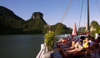 9.45. Check out and take all luggage outside of your cabin, cruise back to the Tourist Wharf through Ha Long bay.